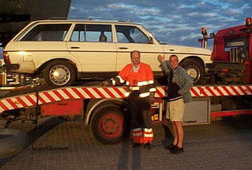 kommer hurtigt til stede, og får losset Mercer'en op på Falck-vognen