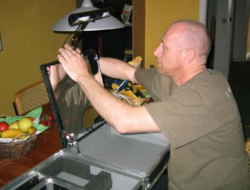 sig at være et spejl ... Ronnie sætter forsigtigt lampen på